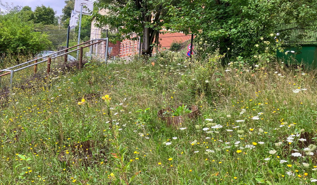 Im kommenden Schuljahr 2025/2026 ist die Vollendung der Hecke geplant. Auch das Anlegen eines Steinhaufens steht an, denn Steinhaufen leisten einen wertvollen Beitrag für die Artenvielfalt und sind ein einfaches Mittel, um die Natur im Siedlungsgebiet zu fördern.