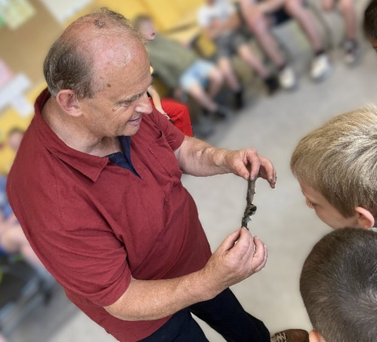 Am Ende des Fledermausprojektes war wieder Reiner Tschaschke als erfahrener NABU-Aktiver und Fledermauskenner gefragt. Gespannt lauschten die Kinder seinen Ausführungen, waren fasziniert vom mitgebrachten Präparat einer Fledermaus und stellten viele Fragen, die ihnen Reiner mit Geduld und Fachkompetenz beantwortete.
